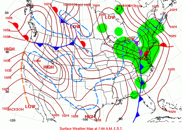 As shown above, a warm front was in the vicinity of Manhattan on Monday, January 8th, between 7 and 8 AM, as first explained by David Wally of the National Weather Service in Upton, NY. This “warm front” was the ground-level intersection of the top of a northward-moving wedge of cold air. Within such a wedge, there are often inversion layers that can hold pollutants or other foul-smelling compounds close to the ground, by reducing vertical atmospheric mixing. Fog layers, often visible as you drive along a highway in the early morning, are small-scale inversion layers that are made visible due to the moist fog. The weather system passed through the area by noon, strong winds blew from the west, and any foul smells were cleared out.