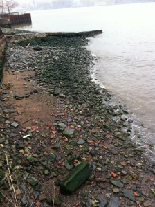 Also noticeable during the freshet and especially with a coincident spring tide is that the water is also muddier than any other time of year, more of a grey-brown, and with almost no hint of the chlorophyll green that you get in summertime. The exact color depends on where you are along the Hudson, as the Harbor has more ocean water and Haverstraw and Tappan Zee are shallower and muddier.