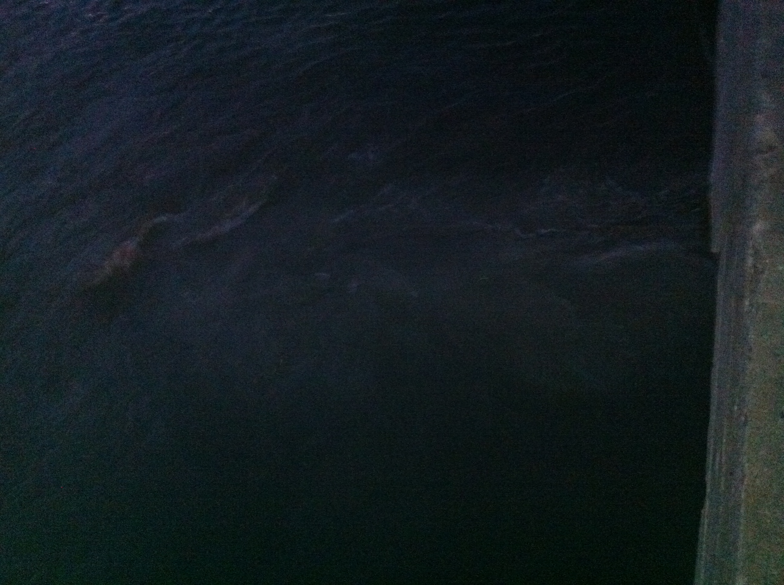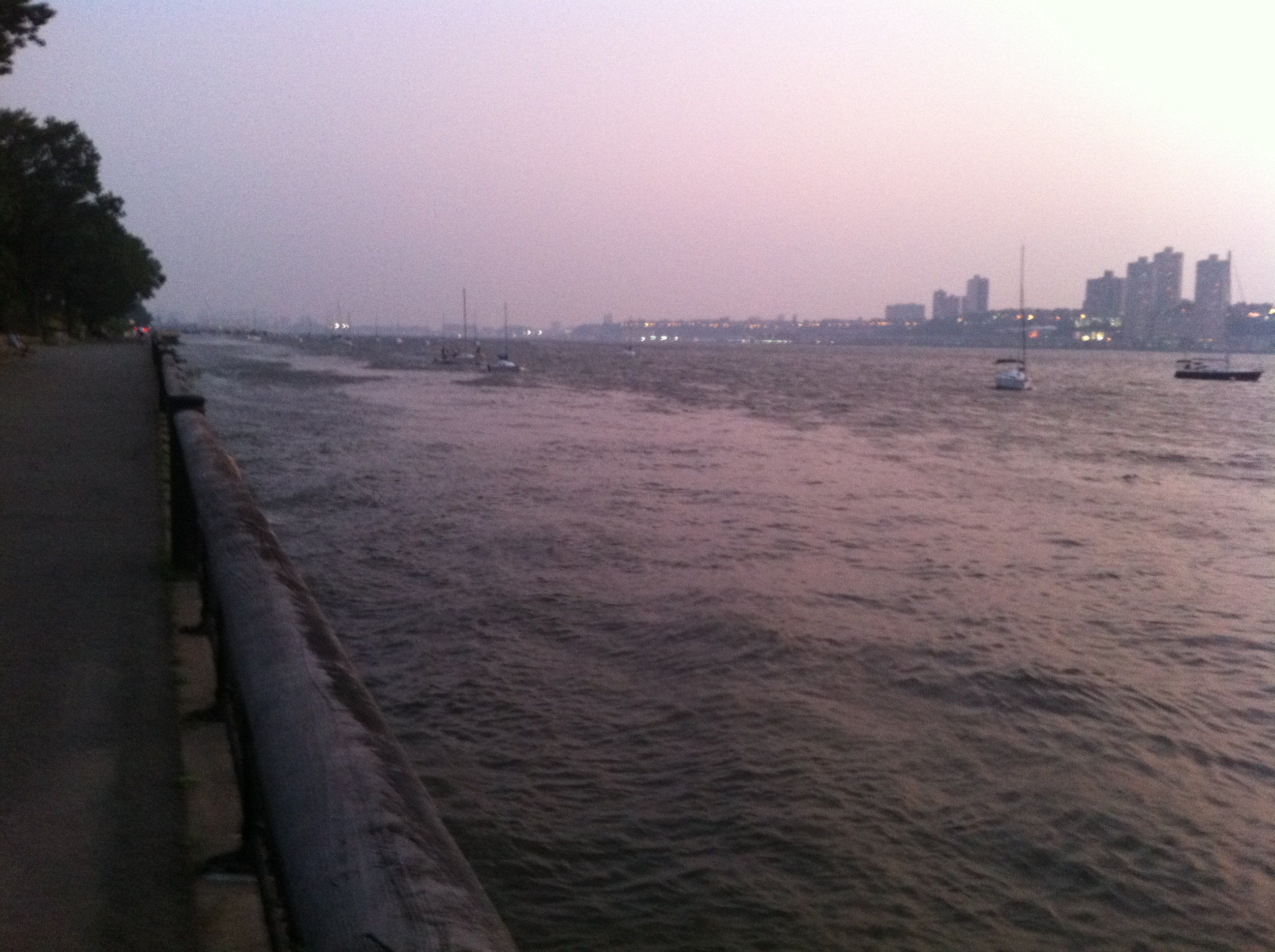 There at the south end of West Harlem Piers Park, I took pictures of the outfall (uck!), though it was a bit dark by then, well after sunset. This was in line with the fact that the Riverkeeper patrol boat only observed sewage spills occurring at 125th Street and Dyckman Street to the north.