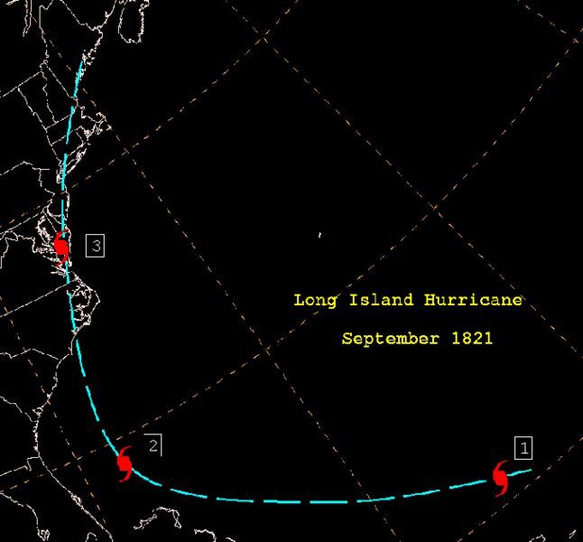 [temporary note: With Irene approaching our area, I’ll mention that it has shown some weakening instead of strengthening on Friday, so it extremely unlikely to have a similar strength or impact to the Hurricane of 1821. Check the latest updates at http://SeaAndSkyNY.com%5D