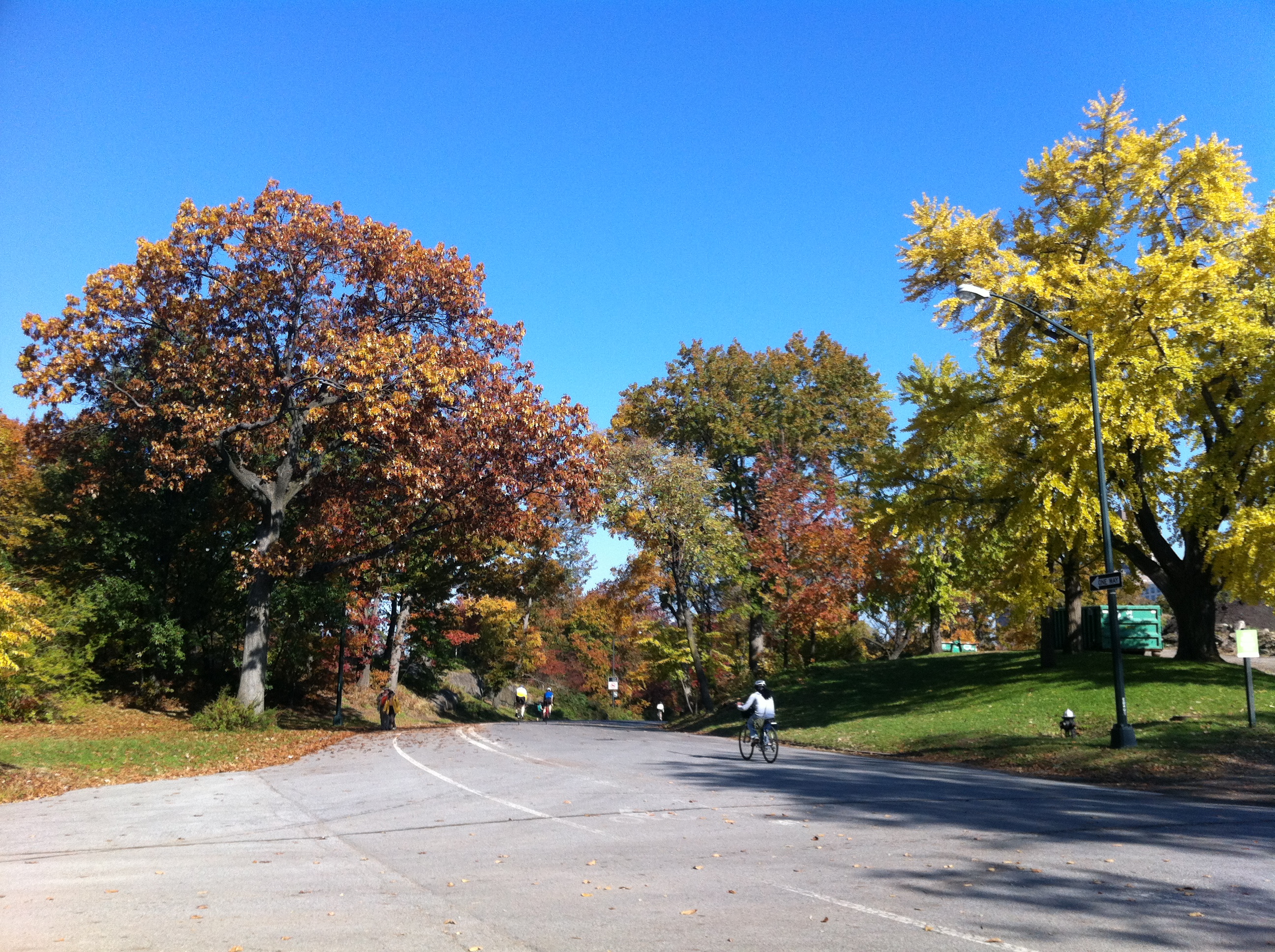 One of my favorite things about living in New York City is checking out the fall colors on my bike commute through Central Park. However, for subway commuters and tourists who don’t get to cruise through the park every day, this can be a tough thing to catch, because the leaves in the heart of the city don’t change color until roughly two weeks later in the season than nearby suburban and rural areas to the north and west. A visitor consulting the Weather Channel’s maps, or other common resources, might be misled by the lack of detail focusing in on New York City.